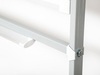 Передвижная поворотная доска установлена на металлической стойке, позволяющей ей поворачиваться вокруг горизонтальной оси. Две рабочие поверхности — из стального эмалированного листа с антибликовым покрытие. Обрамление доски — высокопрочный алюминиевый профиль, благодаря чему имеет высокую износоустойчивость и прочность. Вы также можете размещать дополнительные наглядные материалы, плакаты и использовать доску в качестве экрана для проектора. Имеется лоток для мела/маркеров и принадлежностей. Доску вы без усилий можете поставить в любое место вашей комнаты, так как к металлической стойке приделаны четыре колеса. Колёса одной из опор имеют механизм блокировки, это делает конструкцию неподвижной при необходимости. Все школьные доски соответствуют ГОСТ 20064-86 ДОСКИ КЛАССНЫЕ
