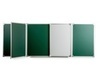 Рабочая поверхность изготовлена из стального полимерного листа, обрамление — высокопрочный алюминиевый профиль, благодаря чему доска имеет высокую износоустойчивость, прочность и надежность конструкции. 1-й элемент это центральная часть школьной доски, которая крепится к стене, а створки (2-й и 3-й элементы), могут независимо открываться и закрываться от плоскости центральной части доски до плоскости стены. Также есть статичные 4 и 5 элементные. Они могут быть как для мела, так и для маркера. Петли многоэлементных досок рассчитаны на нагрузку свыше 100 кг. Имеется лоток для мела/маркера и принадлежностей. Все школьные доски соответствуют ГОСТ 20064-86 ДОСКИ КЛАССНЫЕ