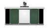 Данная система представляет собой оборудование для школ и дошкольных учреждений, предназначенное для экономии ученического пространства и удобства преподавателей. Функционально состоит из 4-х поверхностей для писания мелом, две из которых свободно перемещаются по рельсовой системе, закрывая интерактивную доску, встроенную в центр рельсовой системы. Слева и справа от интерактивной доски стационарно в стену крепятся две аудиторные доски. Еще две аудиторные доски крепятся в направляющий верхний профиль через систему кареток и имеют свободный ход. При необходимости преподаватель может закрыть интерактивную доску сдвинув их к центру либо раздвинуть их и работать на интерактивной доске. Раздвижная система может быть с разными типами досок: по бокам могут быть меловые, а на рельсах - маркерные доски, и наоборот. Будут учтены все Ваши пожелания! Рабочая поверхность наших досок изготовлена из стального листа с полимерным покрытием, обрамление — высокопрочный алюминиевый профиль, благодаря чему имеет высокую износоустойчивость и прочность. Стальная основа доски даёт возможность крепления наглядных учебных пособий к поверхности с помощью магнитов. По Вашему желанию можем установить лоток для мела, маркера и др. принадлежностей на одну из 4-ёх досок. Все школьные доски соответствуют ГОСТ 20064-86 ДОСКИ КЛАССНЫЕ