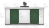 Функционально состоит из 4-х поверхностей для писания мелом, две из которых свободно перемещаются по рельсовой системе, закрывая интерактивную доску, встроенную в центр рельсовой системы.
